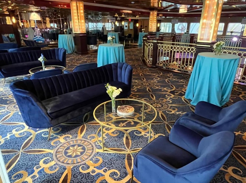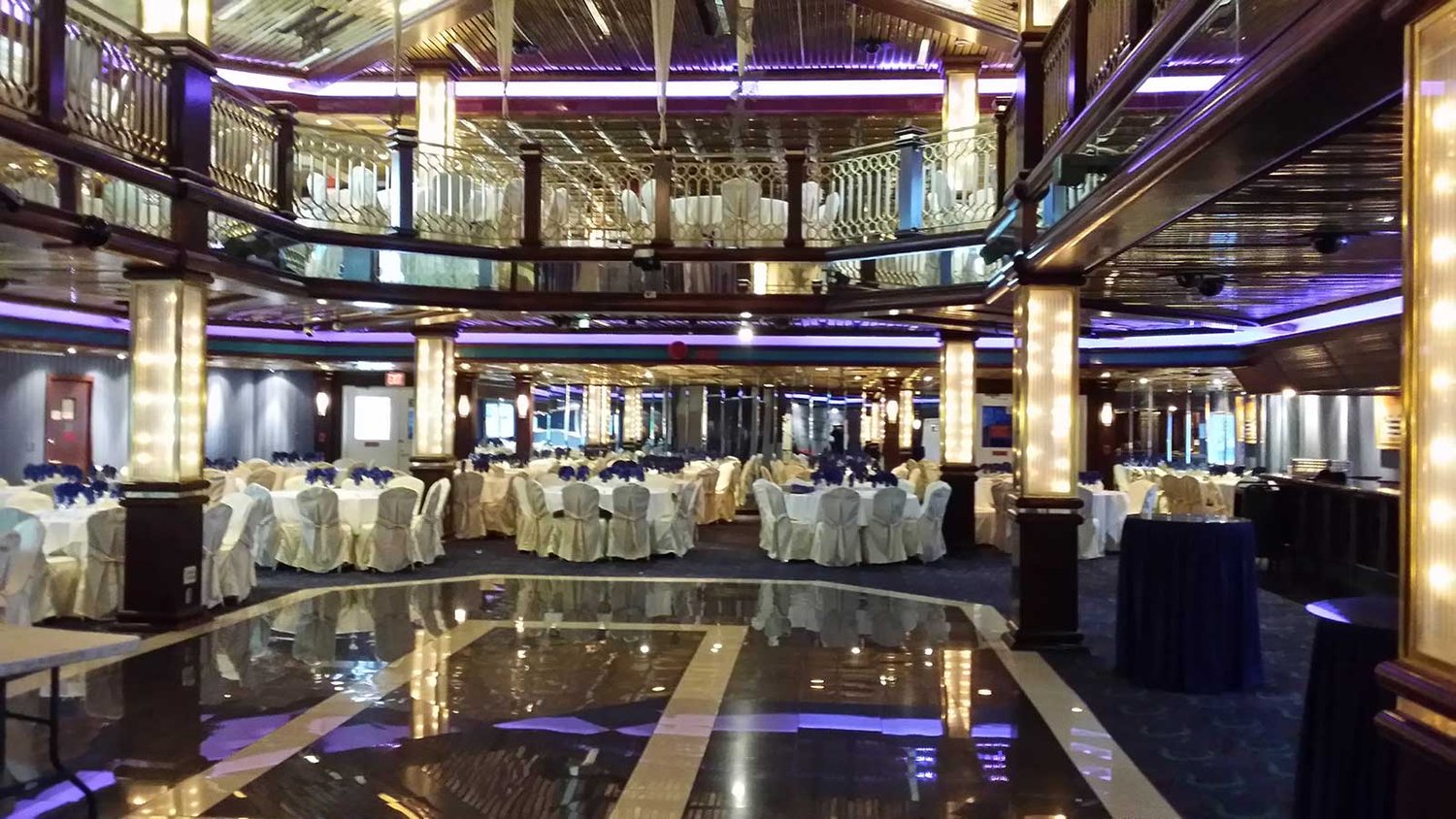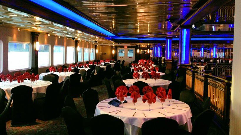 Seas the day is the largest luxury super party yacht in the Northeast (30,000 square feet), able to accommodate the largest, most extravagant yacht events in New York you can imagine. Seas the day has five dining rooms, an atrium with a glass-enclosed elevator, an observation deck and can accommodate up to 1,200 guests.